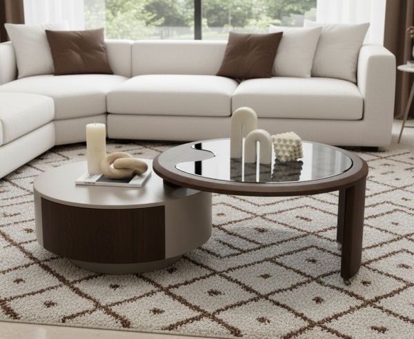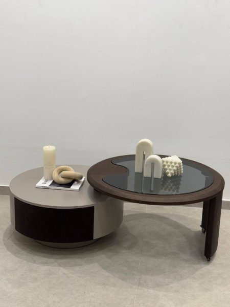 סט שולחנות מטריפים ומיוחדים המשלבים עץ וזכוכית