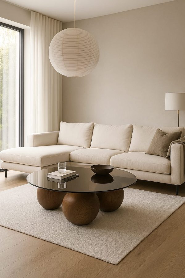 הצורה הכדורית מעניקה לשולחן מראה פיסולי וייחודי.