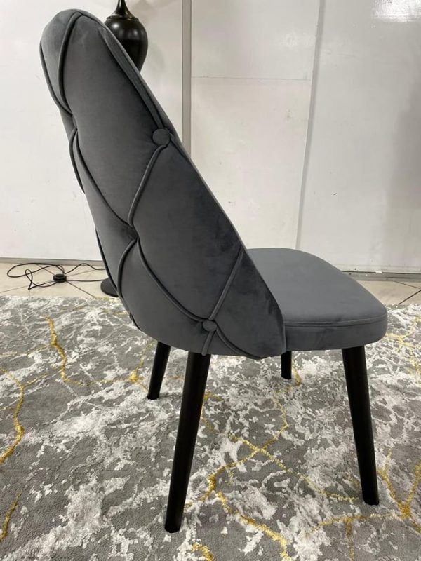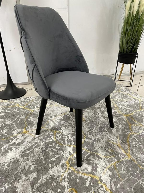 כיסא נוח במיוחד עם גב מעוגל מרופד בבד קטיפתי רך, מלטף ואיכותי.