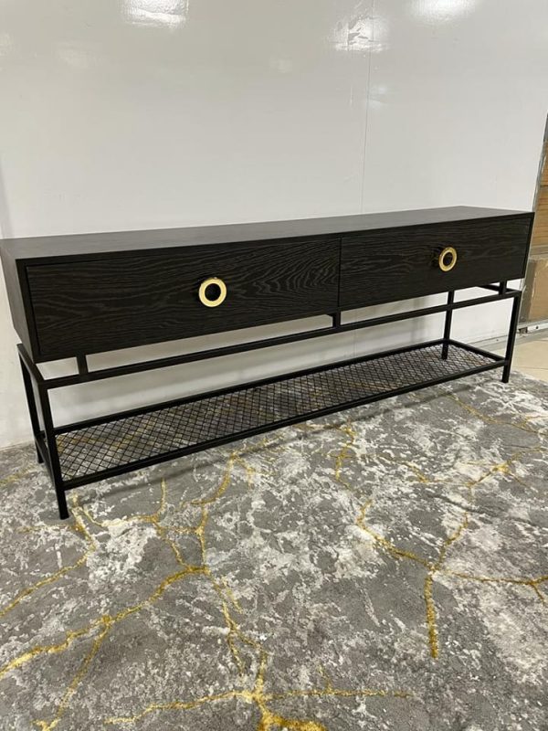 מזנון לסלון מדגם "ברבור" עשוי עץ פורמייקה אלון צבוע שחור בתנור.