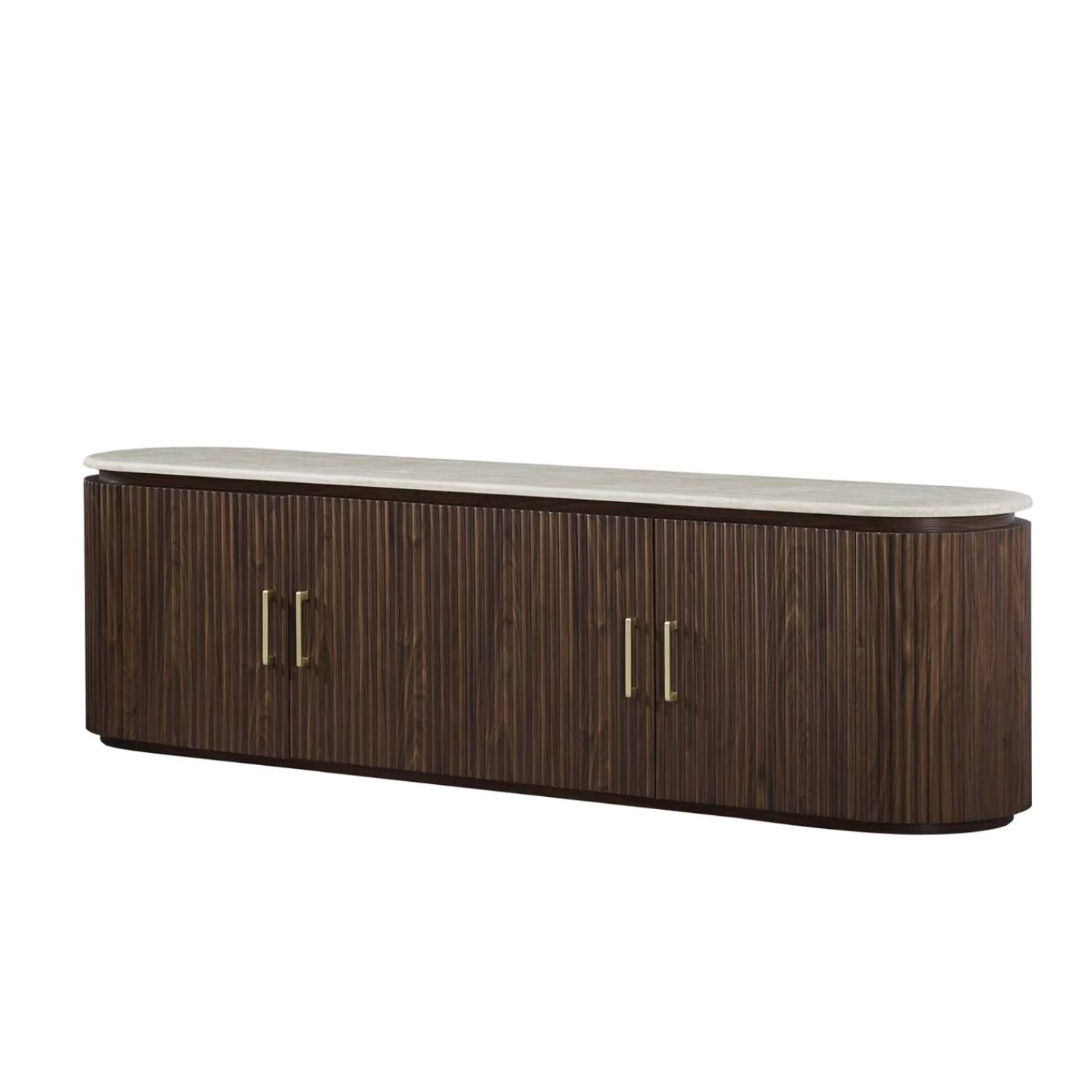 המזנון עשוי גוף עץ בגוון טבעי, עם טקסטורה של CNC שמעניקה לו מראה אלגנטי ומוקפד, פלטת המזנון משיש טרוונטין אמיתי,