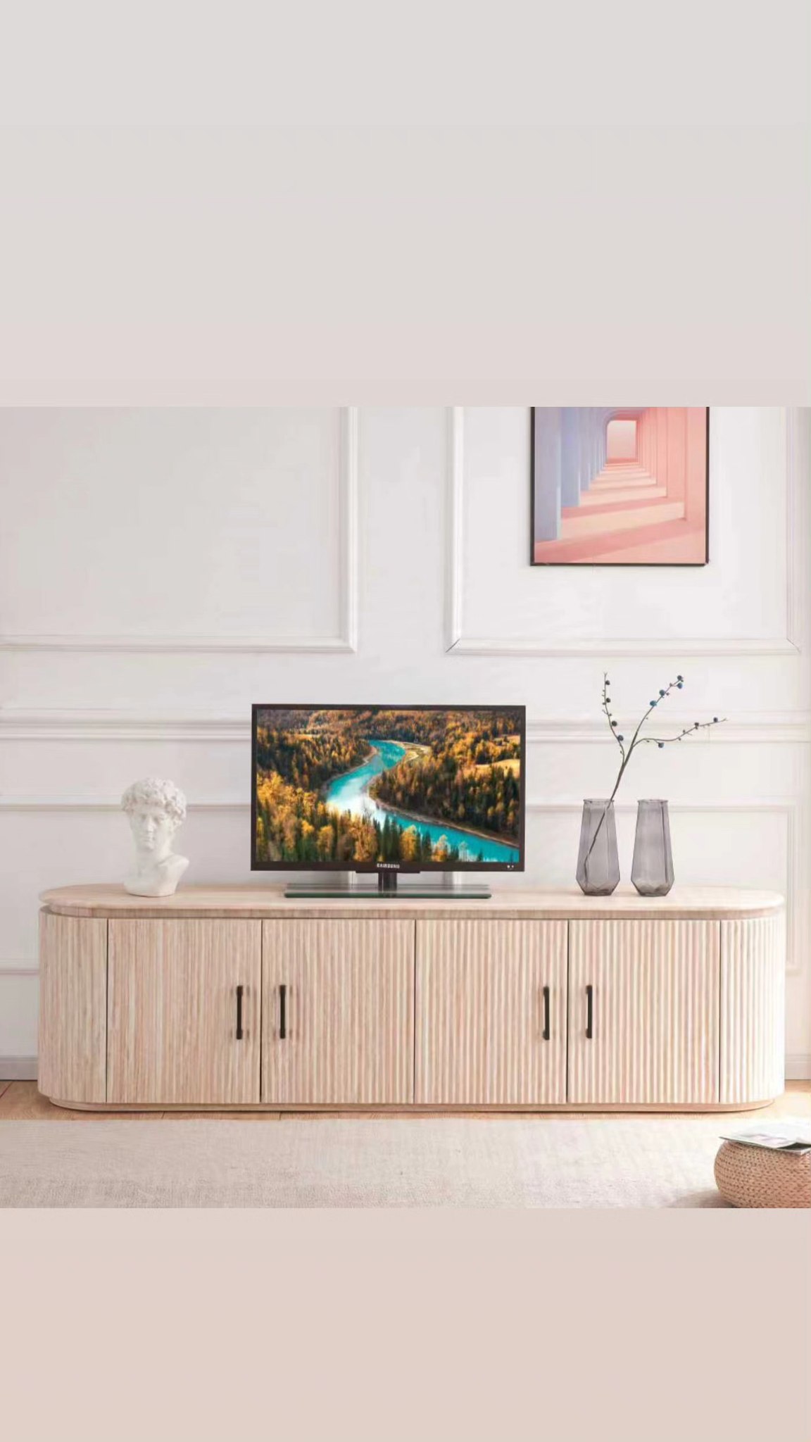 המבנה כולו נמוך ורחב, מה שמתאים באופן מושלם להצבת טלוויזיה מעליו ולשמירה על קו ראייה נוח.