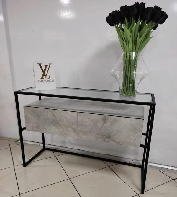קונסולה גידים אפורה עם גידי זהב נחושת המבוקשת