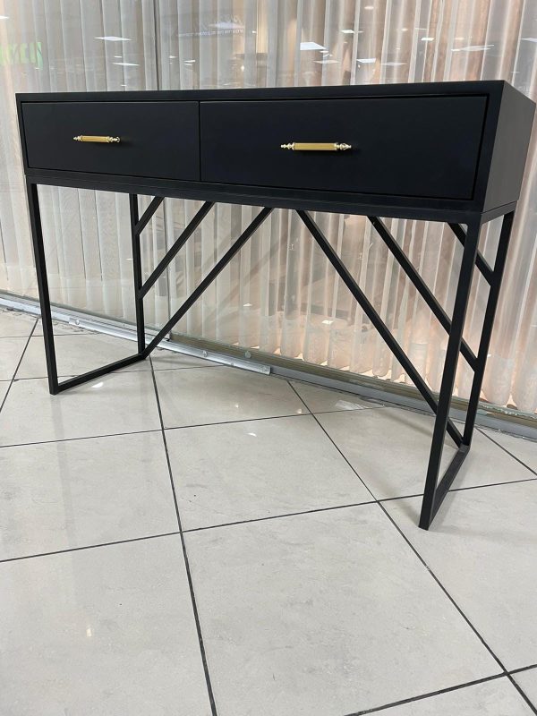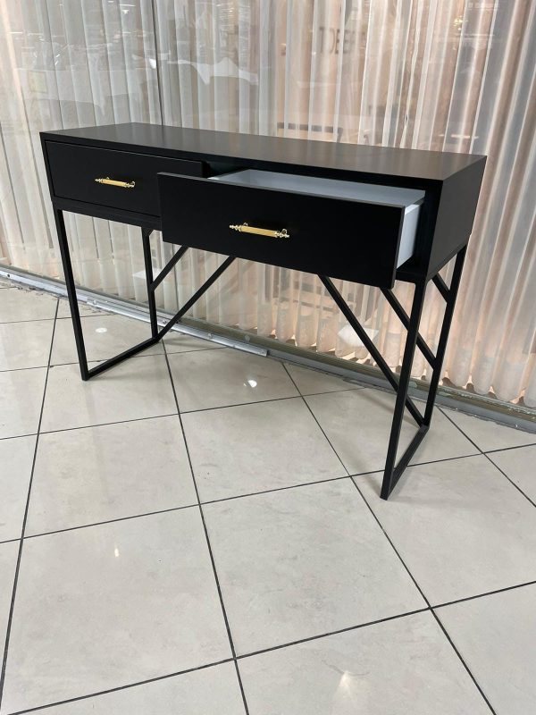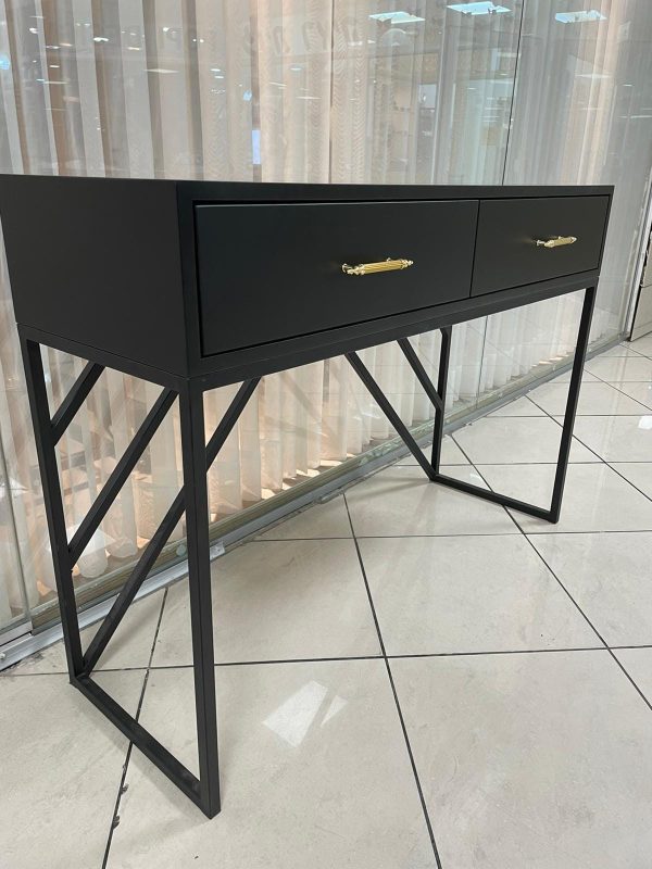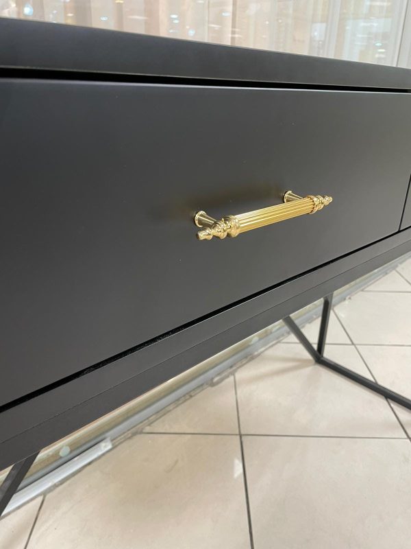 קונסולה עץ בצבע שחור מגירות על מסילות ברזל וטריקה שקטה